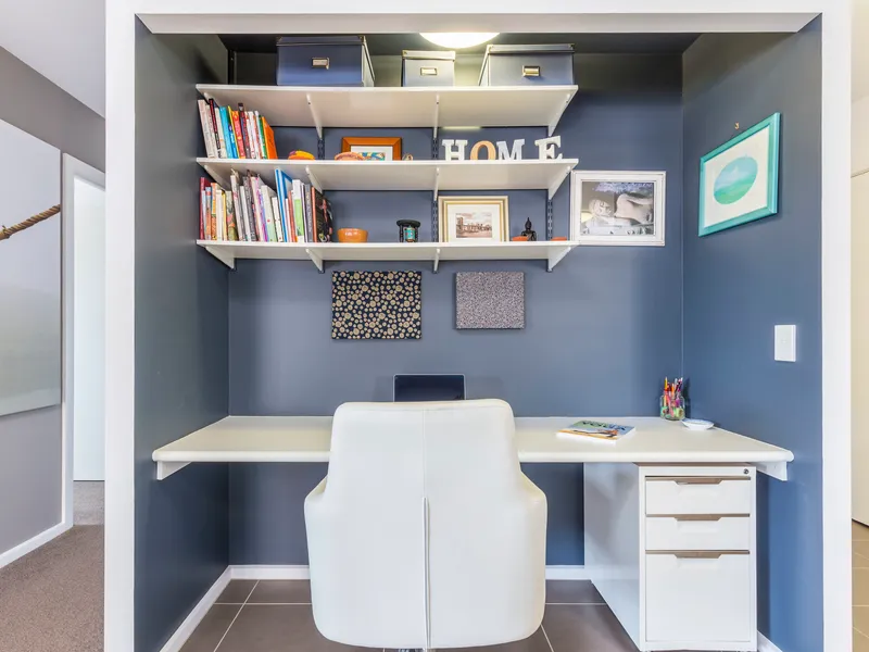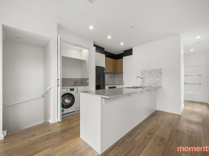 Features include a wide and welcoming entrance hallway, generous open plan living and dining room, stunning kitchen, dedicated study area, two spacious bedrooms, separate and large laundry, plus a massive amount of storage throughout.