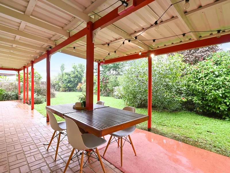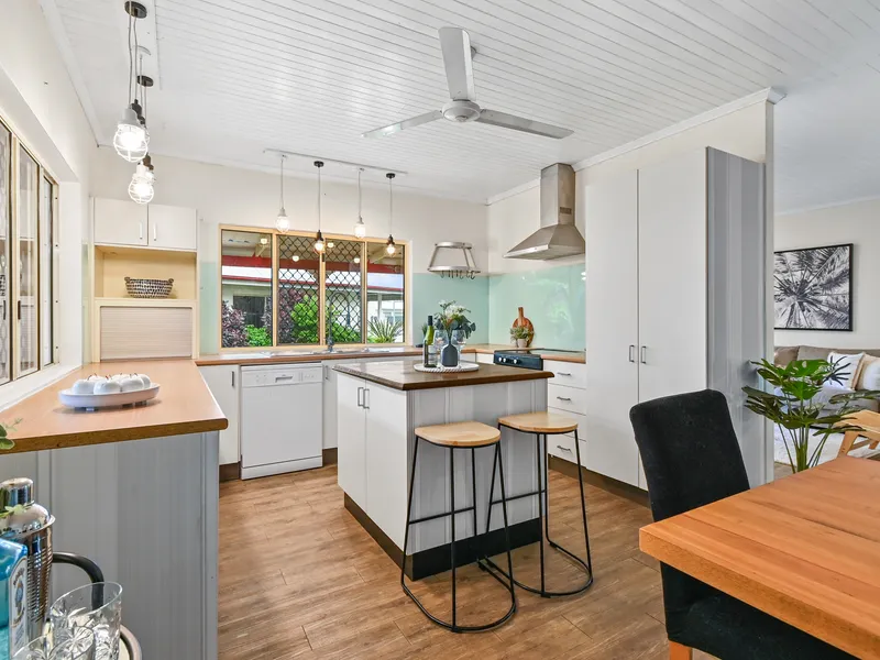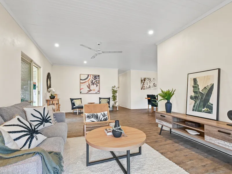 Enjoy peaceful living in this unique home in rural setting along the Old Bruce Highway, conveniently located between Edmonton and Gordonvale. Freshly painted, fully tiled and fully air-conditioned, this well-presented home offers comfort and easy maintenance throughout. The spacious open-plan living and dining area flows into a modern kitchen featuring a quality stove with glass cooktop and generous storage space.