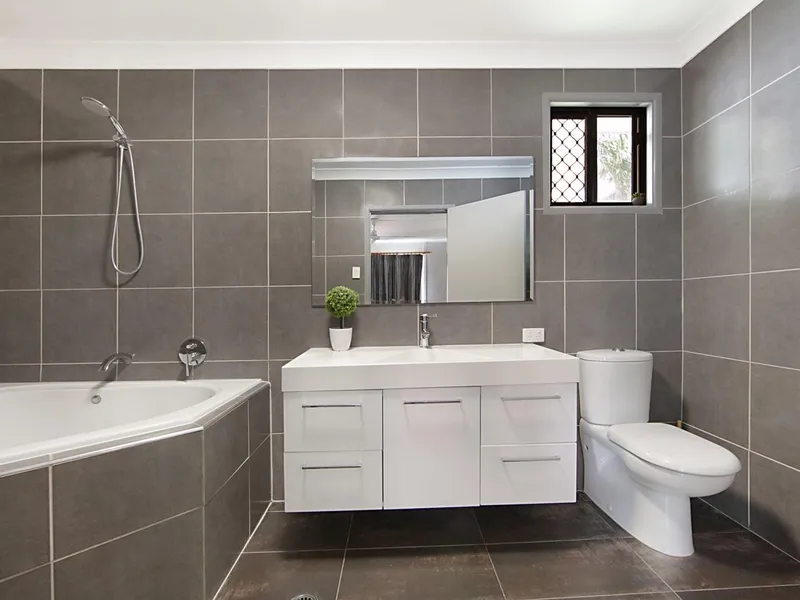 * Stylish trendy fully tiled new bathroom with separate toilet