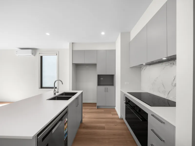 Step into a spacious open lounge that welcomes you with an abundance of natural light. The central kitchen is a chef's delight, equipped with gas cooking appliances, a dishwasher, and ample cupboard space, all overlooking a large open plan dining and living area. This home is designed for modern living and entertaining.