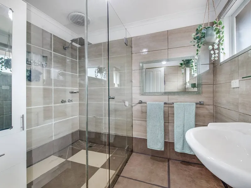 The property features four generous bedrooms. The master suite boasts an en-suite and a walk-in robe, providing a private retreat. The remaining three bedrooms are equipped with built-in robes and share access to a central bathroom ensuring comfort for the whole family.