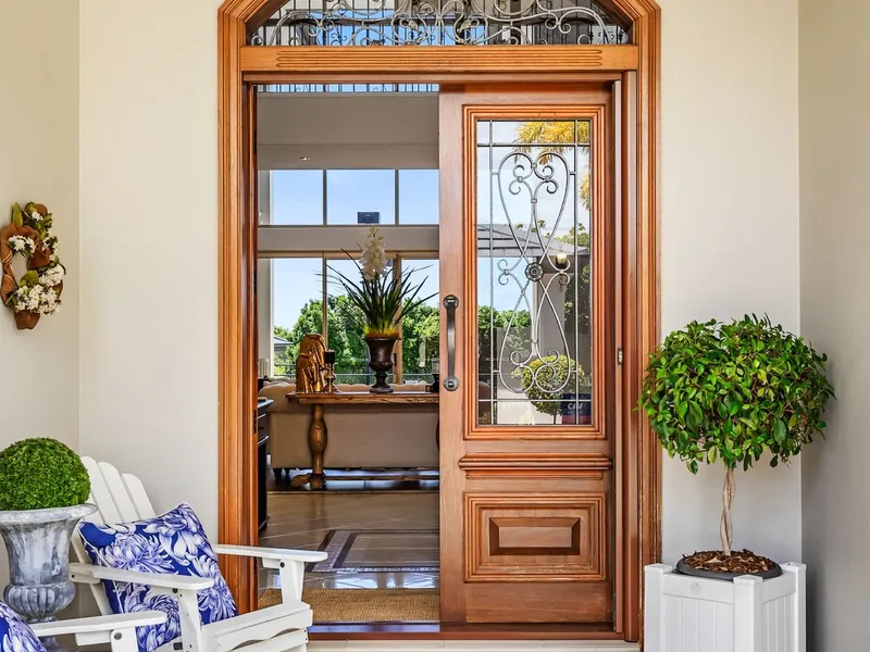 A stunning 12.5m in-ground swimming pool sits surrounded by manicured lawns and established landscaping, creating a tranquil oasis for relaxation and entertaining. The deluxe poolside cabana, complete with built-in BBQ facilities and entertaining space, elevates alfresco living to another level.