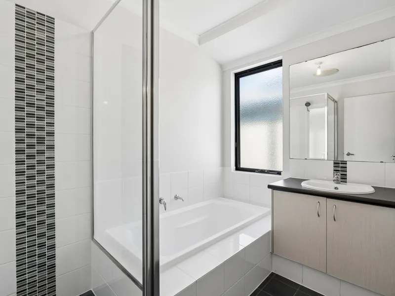 Step outside to a covered alfresco area overlooking the easy-care enclosed lawned garden, perfect for relaxed outdoor living.