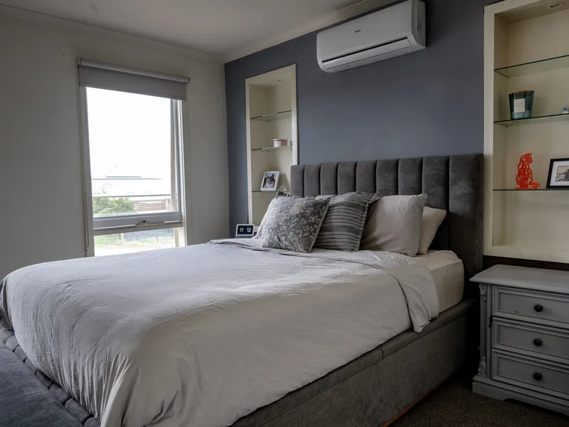 The main bedroom features a private full ensuite and wall-to-wall built-in robes, creating a comfortable retreat. Year-round comfort is assured with reverse cycle air conditioning and a cosy gas log fire.