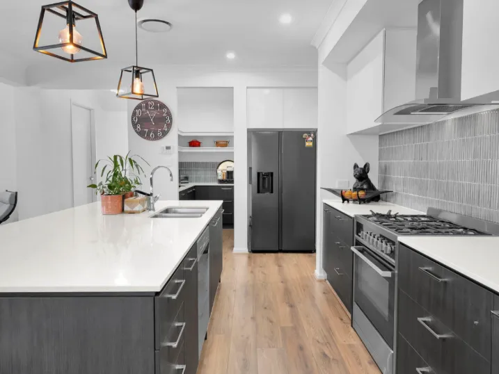 At the heart of the home is a stunning gourmet kitchen, complete with quality appliances, stone benchtops, and a full butler’s pantry, all overlooking the expansive open-plan living and dining area. Flowing effortlessly to the covered alfresco and low-maintenance backyard, this home offers the ideal balance of relaxed living and practical functionality, with additional spaces including a separate media room and dedicated study.