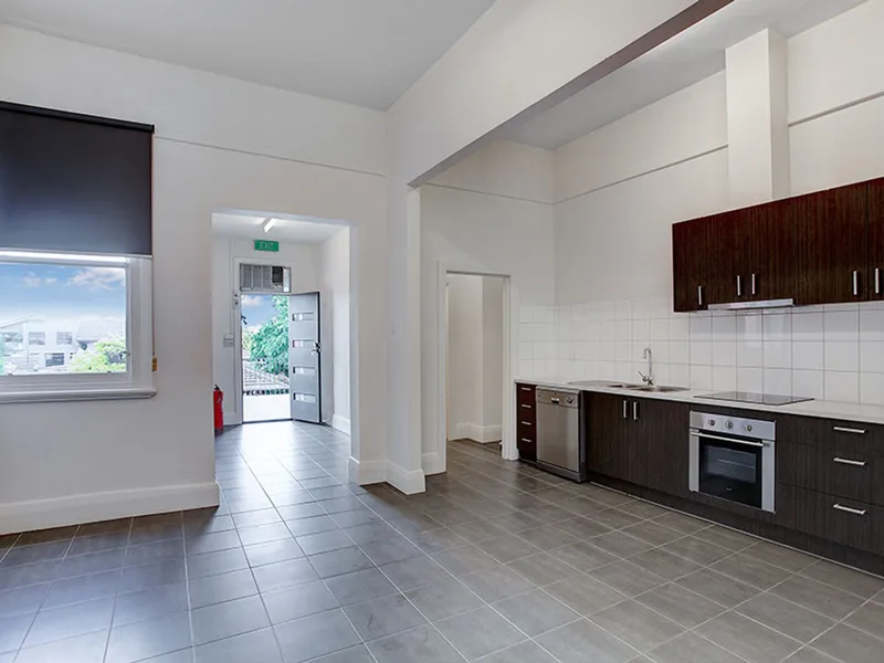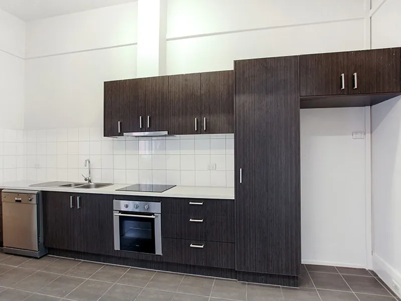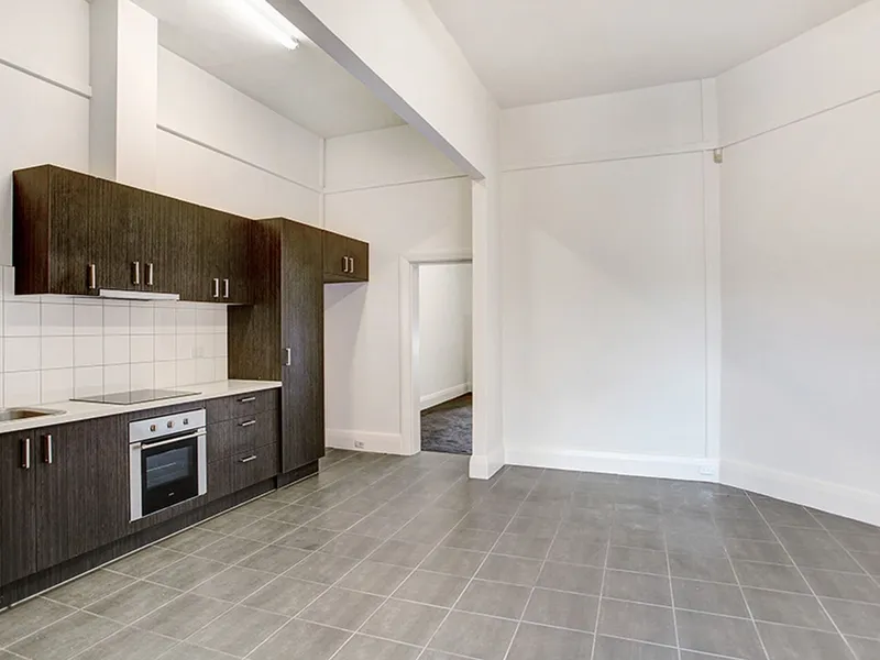 The property features an open-plan living area with a modern kitchen, creating a versatile space that can be adapted to your needs. Two smaller rooms overlooking Williamstown Road can be used as bedrooms, or alternatively as a study, storage, or wardrobe, while the larger living area can easily function as a spacious main bedroom if desired.
