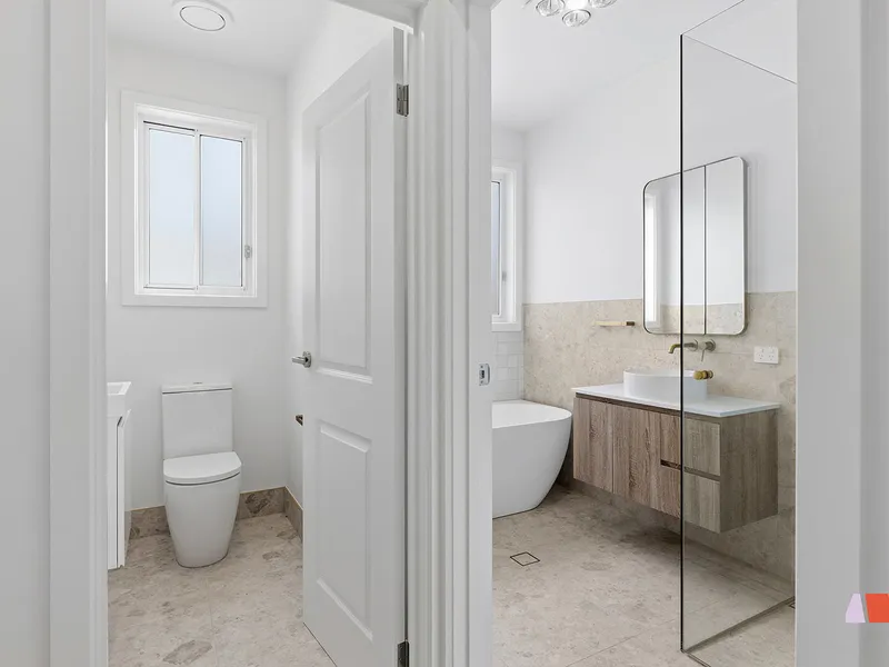 Multiple living zones provide versatility and space, with two separate living areas providing flexibility for families or professionals seeking extra space to relax, entertain, or work from home. Bathed in natural light thanks to its sunny north-facing orientation, the interiors feel warm, expansive, and inviting throughout the day.