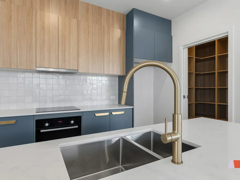 The heart of the home showcases contemporary finishes, premium appliances and a spacious walk-in pantry.