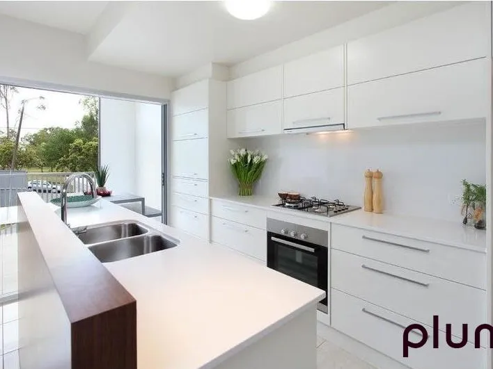 Internal stairs lead up to the large, air-conditioned L shaped living and dining areas that flow through wide sliding glass doors onto an extensive full width covered front veranda with city and panoramic views. Adjacent to the living and dining is a well-equipped kitchen with glass cooktop concealed rangehood wall oven and separate grill, integrated dishwasher, large corner pantry, plenty of drawer and cupboard space.