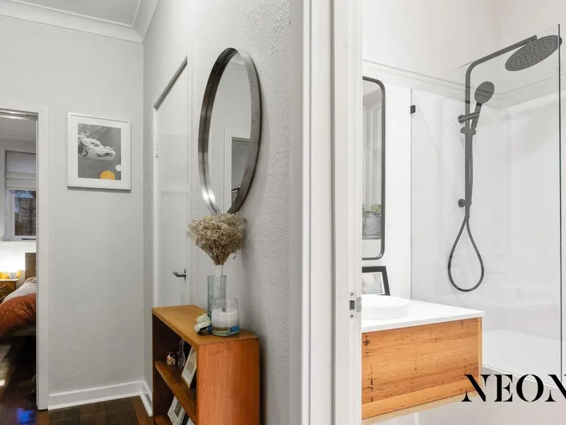 Inside, the character home has been beautifully renovated from end to end while still respecting its original art deco features. Think hardwood jarrah floors, high ceilings, classic character details and a layout that just works. Living spaces look out expansive windows with luxurious green garden views in all directions.