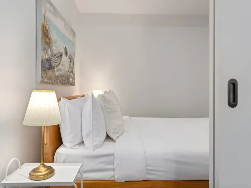 • Open-plan design with sliding partition (not a fully enclosed bedroom)