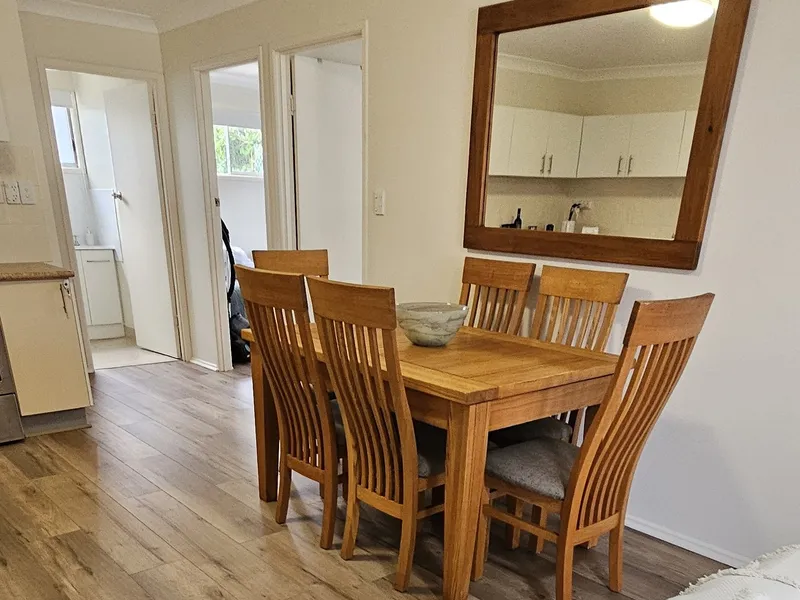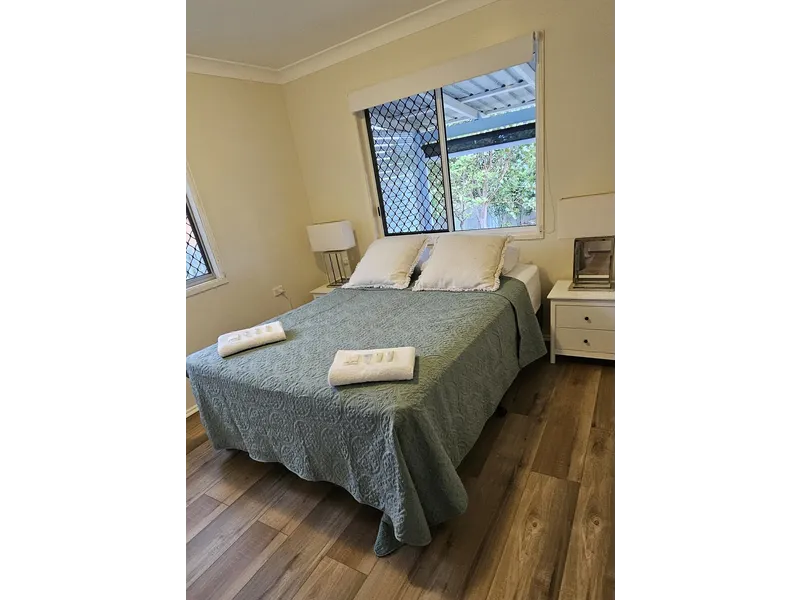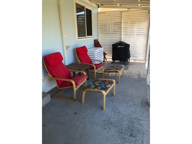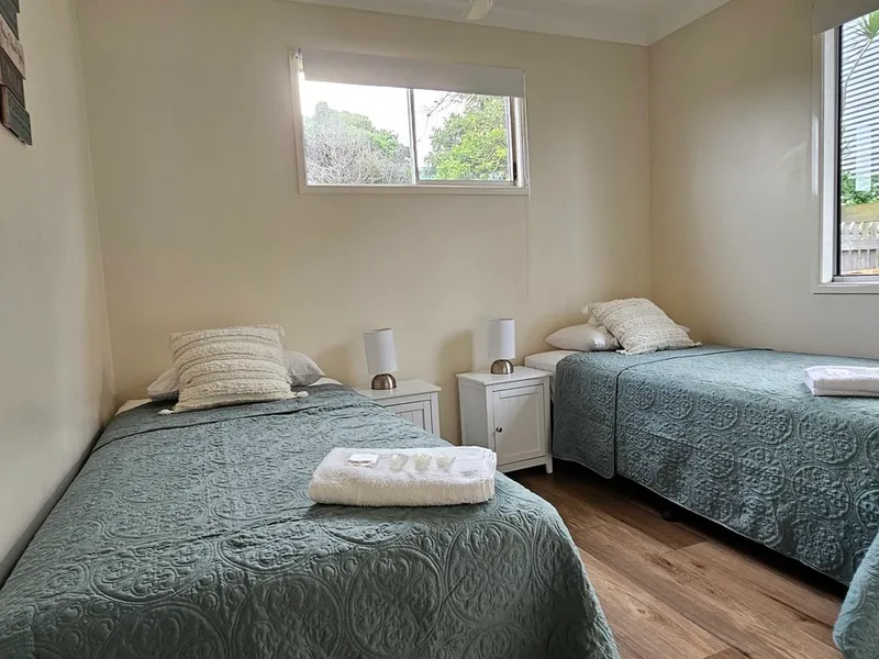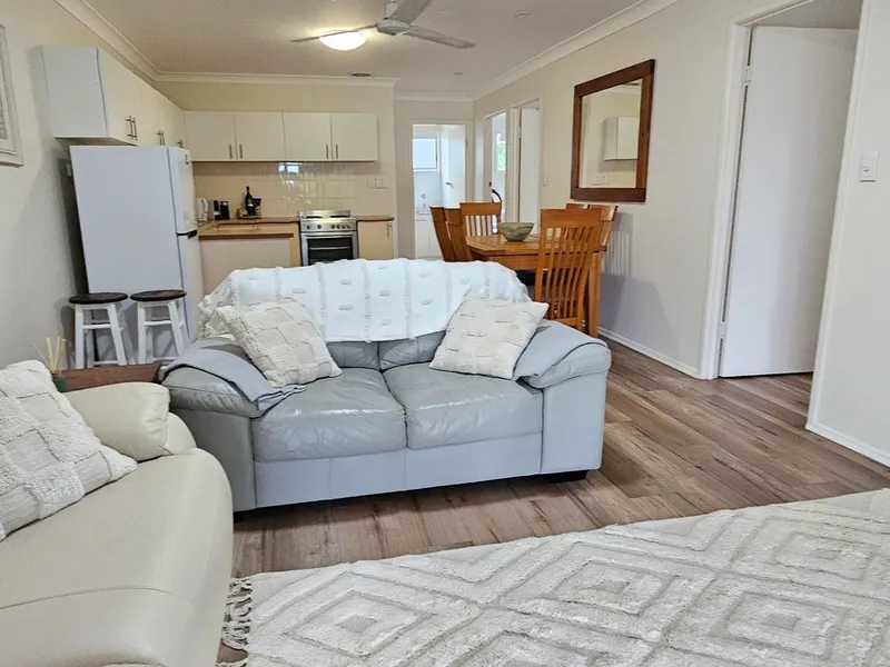 Relax at this peaceful place to stay, 100m from 2 beautiful beaches, living area opens to back verandah with glimpses of Zilzie Beach.